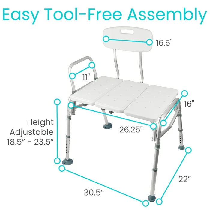 Ideal for seniors, individuals recovering from surgery, or anyone with limited mobility, this transfer bench promotes independence and confidence during daily hygiene routines. The sturdy frame and textured seat provide dependable support, while the adjustable design ensures a secure and customized fit for most standard bathtubs.